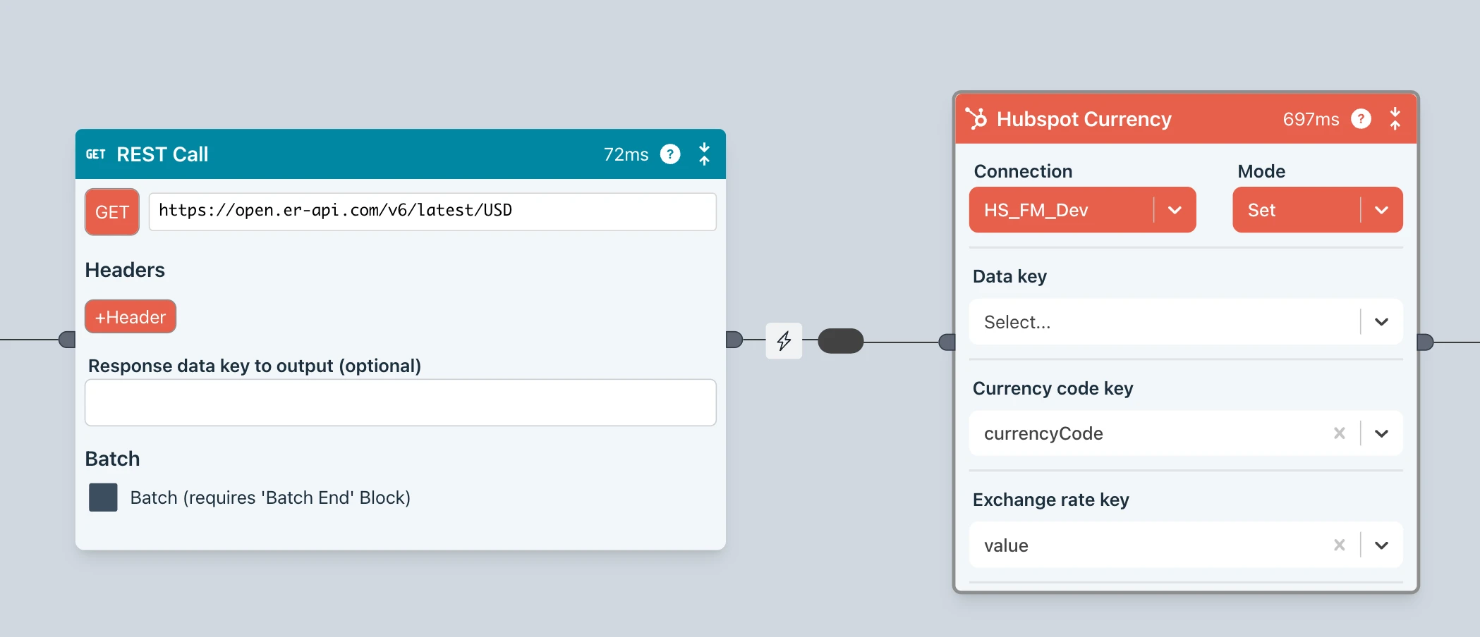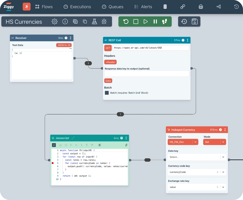 This flow is all it takes to get exchange rates from an API, transform the data then finally update all exchange rates in HubSpot with the latest rates.