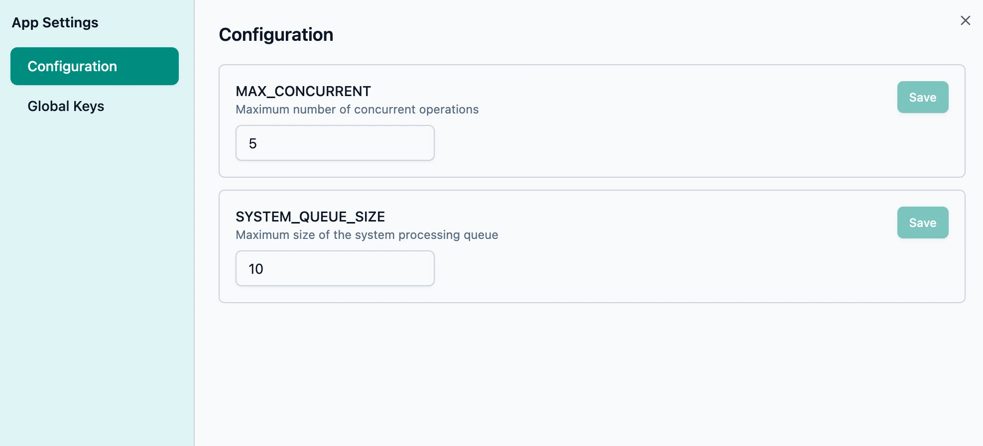 Tune the system parameters to suit your integrations and hardware capacity.